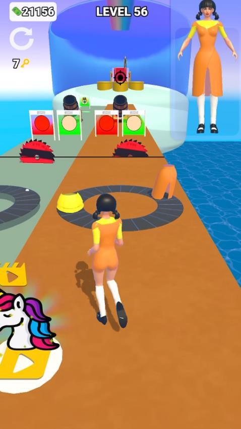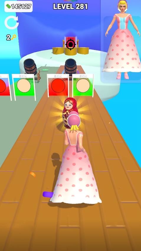 3、遇到障碍时及时调整奔跑路线,灵活躲避陷阱同时保持速度,顺利完成换装挑战并解锁更多造型与关卡内容。