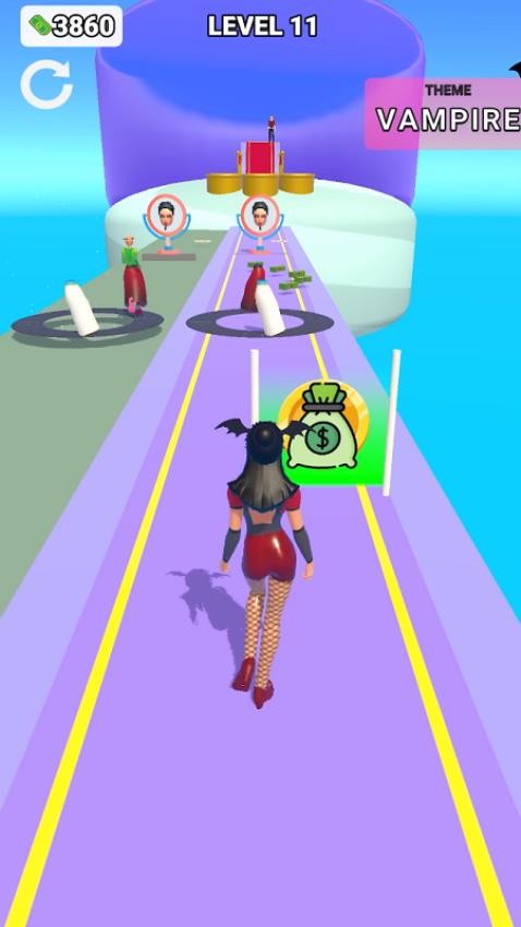 3、无限模式考验持久战力,系统会记录最远跑距和最高分数。全球排行榜让玩家能与好友一较高下,争夺时尚达人称号。