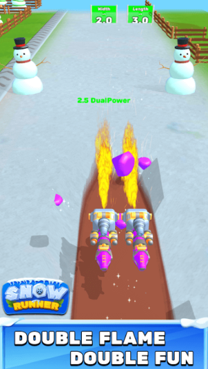 1、游戏独创性地将冰雪场景与火焰喷射机制完美融合,玩家需在银装素裹的世界中开辟前进道路,感受冰火交融的独特游戏魅力。