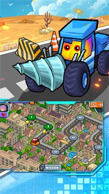 2、卡通渲染技术呈现独特的视觉风格,夸张的车辆造型搭配鲜艳的场景色彩。特技动作时的特效表现尤为突出,空中翻转等动作配有华丽的粒子效果。