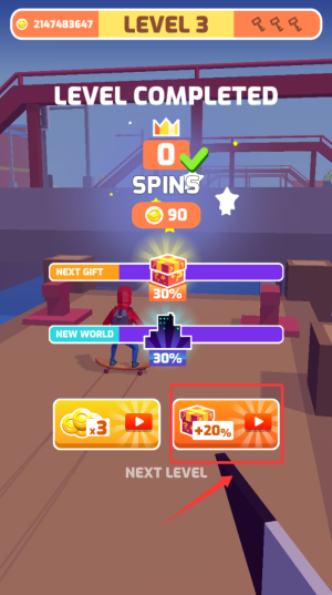 4、系统每日提供3次观看推广内容的机会,成功完成观看后可随机解锁稀有滑板配件、特殊涂装或限时加速道具,这些奖励将显著提升游戏体验。