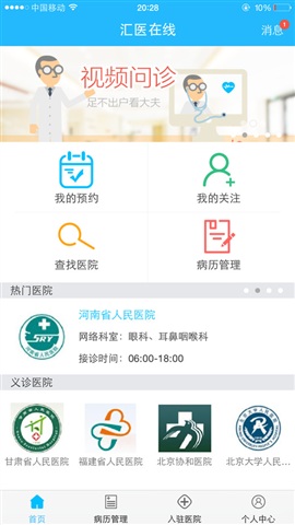 5.汇医在线平台作为连接医院和患者的桥梁,提供技术支持实现足不出户,视频接诊。