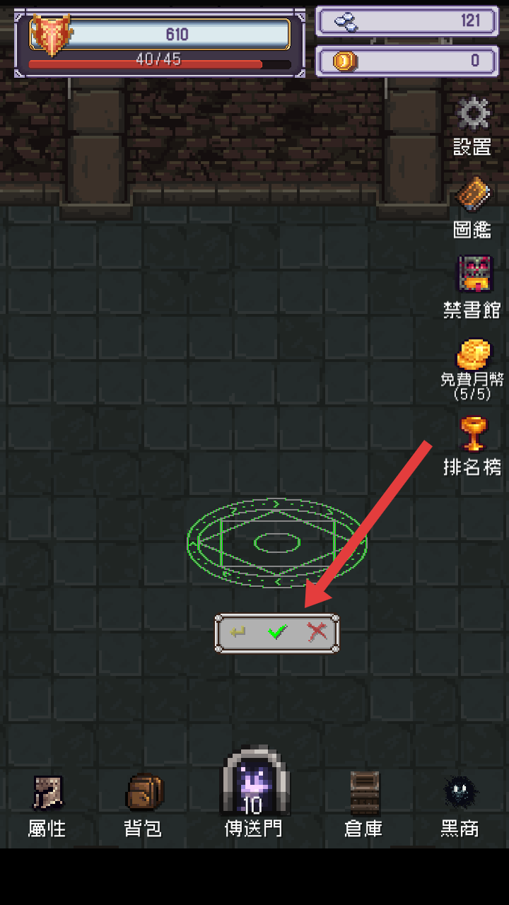 3、在傳送門界面,点击绿色对勾图标放置怪物传送阵,确认后就会有史莱姆怪物传送过来,需要击败他们。