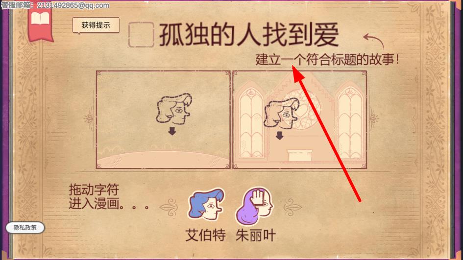 2、到“孤独的人找到爱”这类关卡时,紧扣标题,把艾伯特、朱丽叶等字符拖进漫画框,规划好人物出场顺序、所处场景,一点点搭建起故事发展的逻辑脉络。