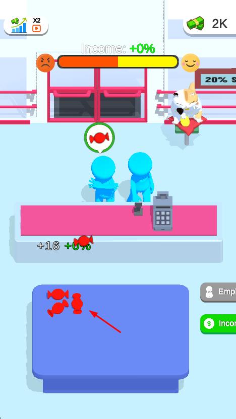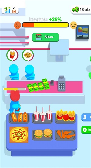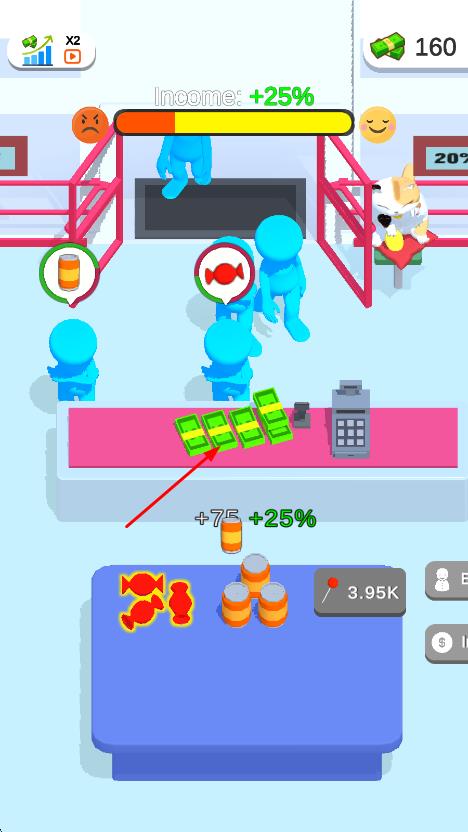 2、游戏中途,根据顾客需求调整商品种类与摆放位置,完成限时促销任务,用奖励升级设施提升超市吸引力。