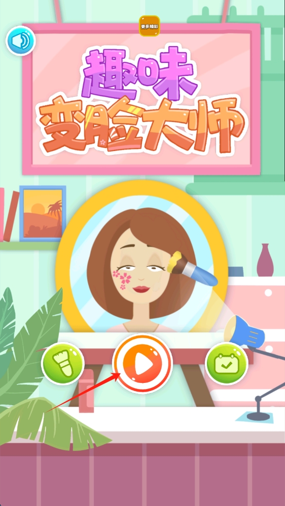 1、在趣味变脸大师启动页,点击播放按钮,开启创意变脸挑战之旅,点击开始游戏。