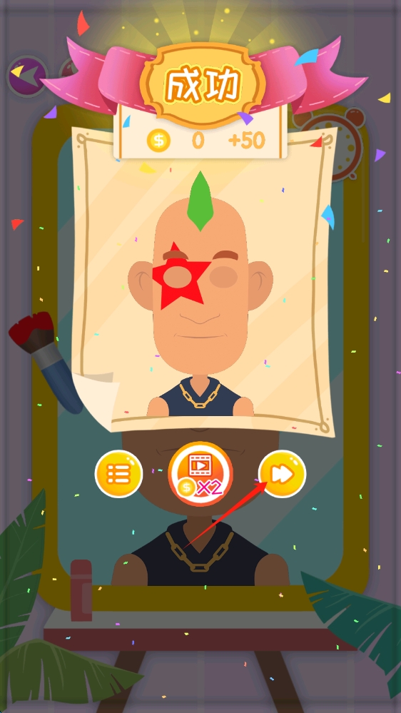 1、涂鸦换脸挑战:需要帮助角色完成涂鸦挑战,在关卡中根据任务找到对应的脸谱进行换脸,以此获得分数,增添游戏的挑战性。