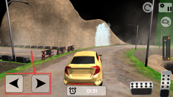 3、利用左侧左右箭头按钮控制黄色轿车转向在山路弯道处及时调整方向避障。
