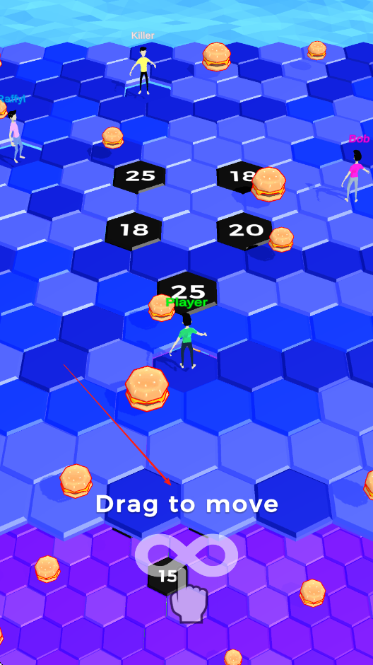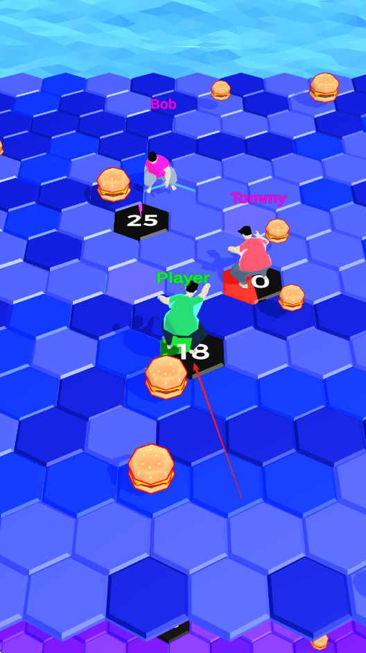 2、资源争夺技巧:优先收集赛道中央和密集区域的汉堡,这些位置资源丰富但竞争激烈,可通过突然变向干扰对手,为自己创造收集机会。