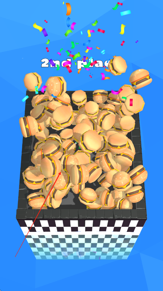 2、需持续收集赛道上的汉堡以维持移动状态,同时注意避开旋转的障碍物和对手的碰撞,利用地形优势超越他人,保持在赛道前列。