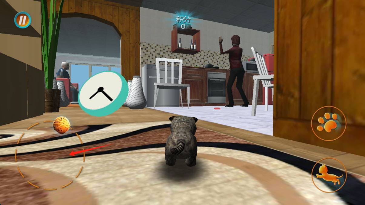 2、游戏中用左侧摇杆,控制宠物移动,探索室内场景,接近物品或人物拨动轮盘移动人物。