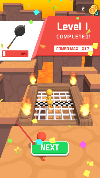 3、顺利抵达Level1终点区域,当屏幕显示Level1 COMPLETED!时,点击底部绿色的NEXT按钮,可查看本次闯关得分、combo数据,随后进入下一个全新关卡挑战。
