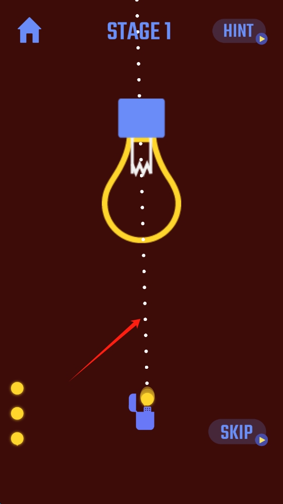 2、关卡1中,引导光点沿虚线移动,从打火机到灯泡,完成点亮任务,点击按住瞄准。