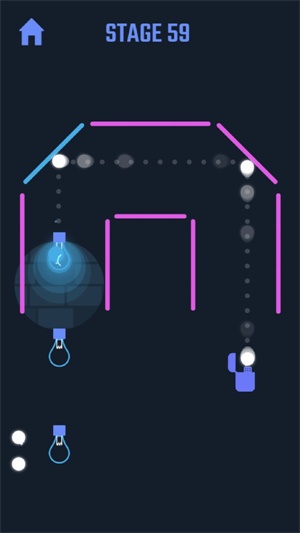1、反弹原理运用:核心玩法围绕物理反弹原理展开,玩家需要调整光线发射的角度和路径,利用反弹让光线触及所有灯泡,使其被成功点燃。