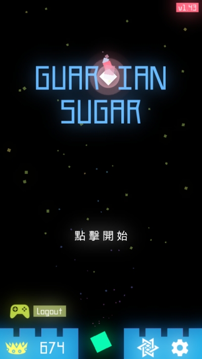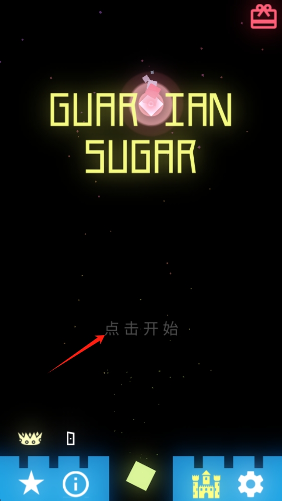 1、在GUARDIAN-SUGAR启动页,点击点击开始,开启守卫方块躲避挑战,点击开始游戏。