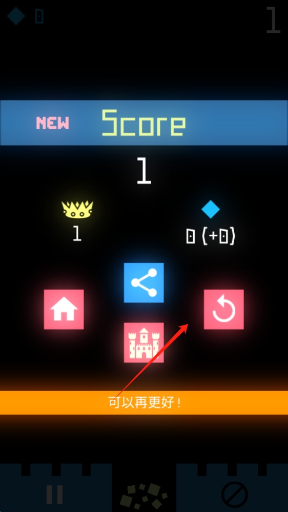 3、结算页点击粉色重置按钮,重新挑战,争取更高分数,突破躲避纪录,点击重开。