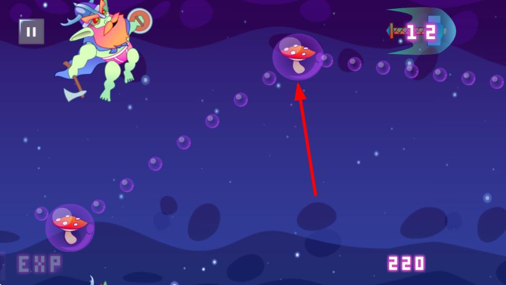 3、操控角色,射击箭头指向的蘑菇泡泡,收集道具,推进关卡。