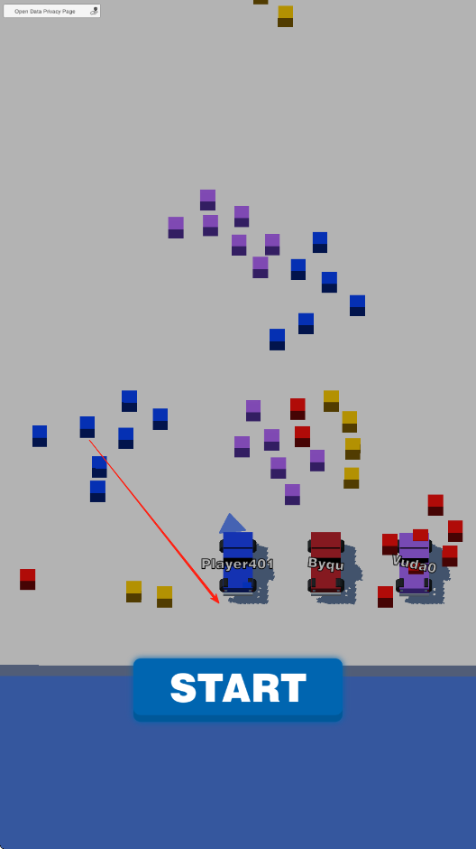 皮卡赛车大战是一款主打玩家竞技对战的全新赛车竞技作品,采用简约清新的画面风格,为玩家带来刺激的赛车对决体验,玩家可选择一种颜色代表自己,驾驶极简风格的小汽车在地图穿越,通过收集与自己卡车颜色对应的小方块来搭建桥梁,克服危险路程,提供大量小车供选择,玩家在激烈竞技的同时,还能欣赏不一样的景色。