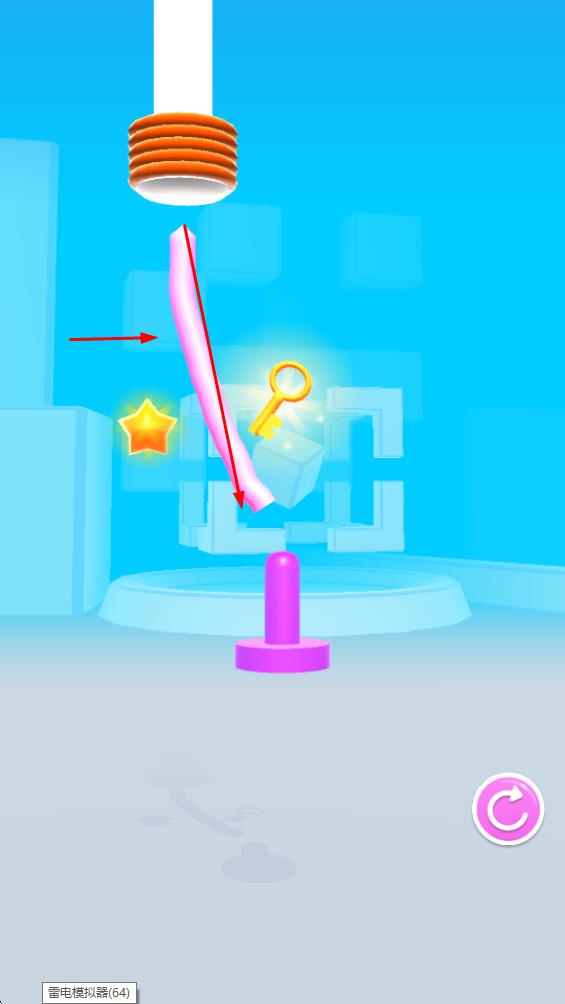 1、在虚拟空间场景中,通过滑动屏幕调整缠绕的粉色丝带,解开缠绕,收集钥匙和星星,完成关卡目标。