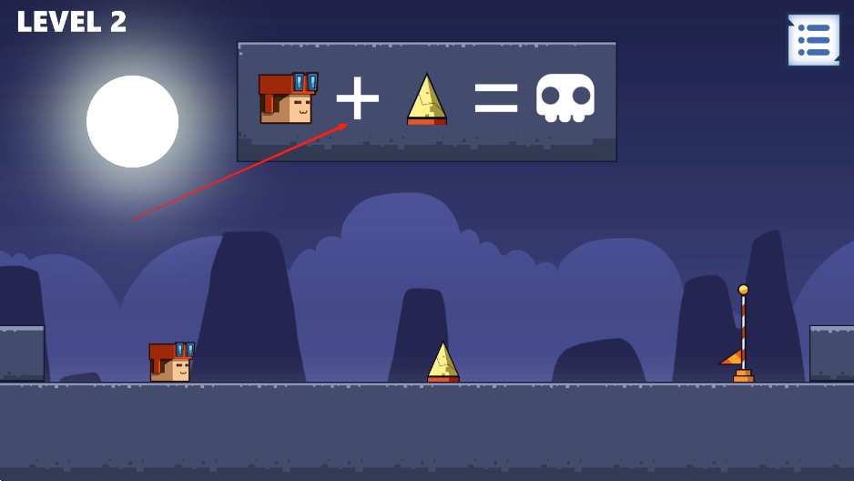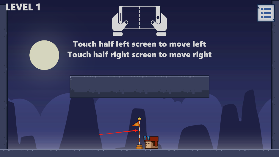 1、进入游戏后,面对初始关卡的简单障碍,你需要尝试滑动屏幕或按压半侧屏幕,控制方块移动,避开第一个障碍,开启跑酷闯关。