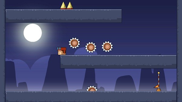 3、操控方块冲过终点标志,即完成当前关卡挑战,可解锁下一关,继续面对更难的障碍布局,感受通关的成就感。