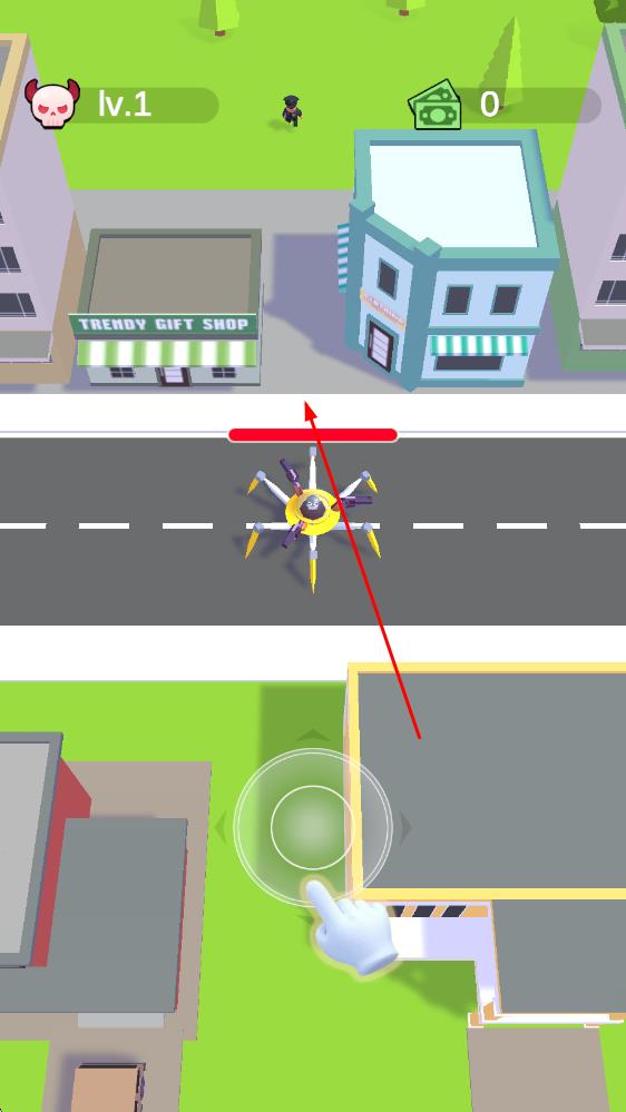 1、下载打开游戏,屏幕中下方有半透明摇杆,用手指滑动控制企鹅机甲移动,开启钢铁都市的破坏冒险之旅。