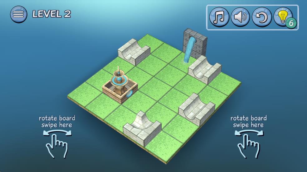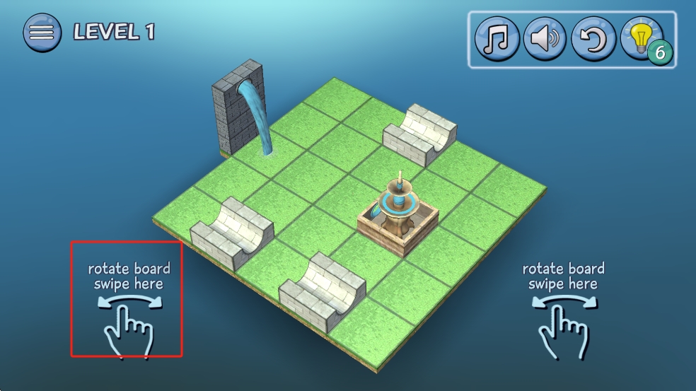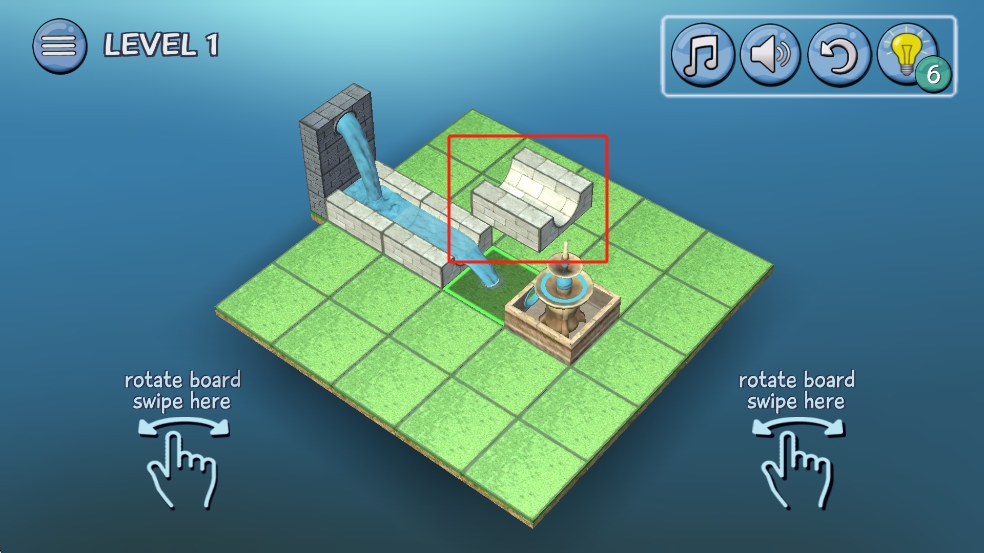 1、进入关卡后,我们先根据左侧显示的提示,滑动屏幕旋转棋盘,调整视角,观察水流与石块布局。