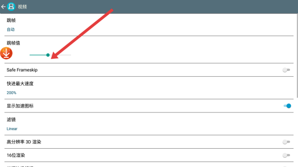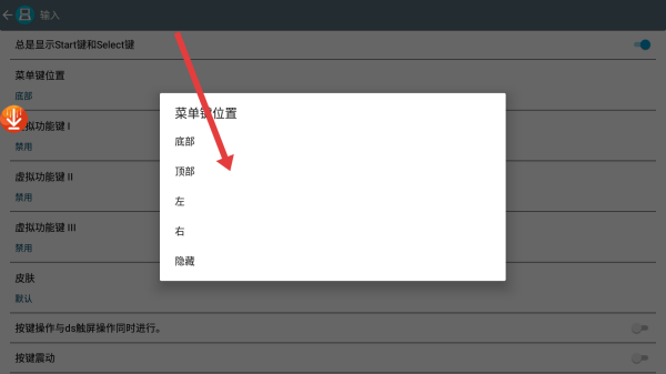 2、进入更改选项,输入栏调整虚拟按键位置底部或者顶部等,功能,视频栏设置跳帧、渲染,优化画面。