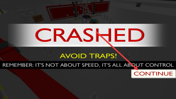 3、若车辆碰撞失败后,在CRASHED界面点击CONTINUE,重新挑战,注意控制而非盲目追求速度。