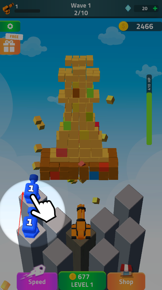 1、精准瞄准技巧:观察方块的颜色和位置,拖动大炮调整瞄准角度,优先瞄准同色调且数量较多的方块集群,提高单次消除效率,快速积累合成能量。