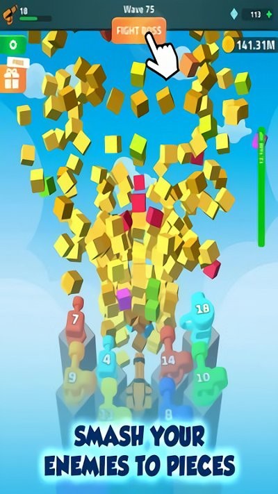 1、卡通精致的视觉呈现:采用鲜明的色彩搭配和圆润的卡通画风,方块造型可爱,炮击特效生动,整体画面精致且富有活力,给玩家带来愉悦的视觉体验。