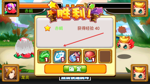 2、战斗胜利后,及时领取经验、道具奖励,获得的道具可用于宠物养成,助力提升宠物战力,点击确定按钮继续后续挑战。