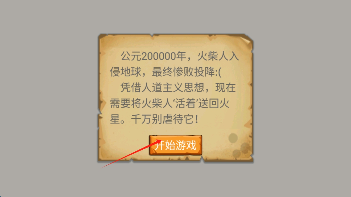 1、点击开始游戏,进入火柴人送回火星的闯关,开启救援冒险,遵循规则别虐待角色,点击开始游戏。