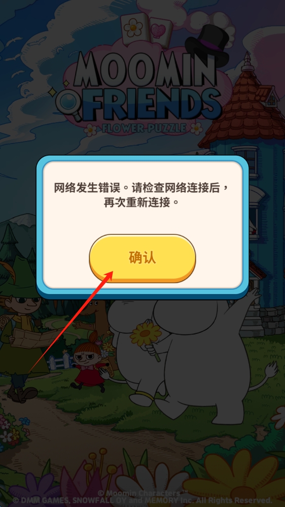 2、遇网络错误提示,点击确认,检查网络连接,重新尝试进入游戏,点击确认继续。