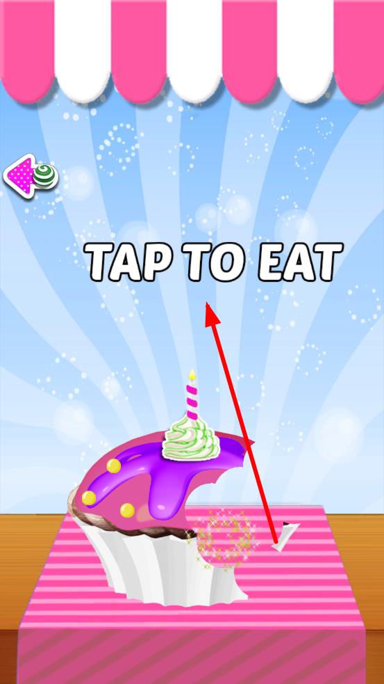 2、创意制作与互动:自由选取食材创意组合,精心装饰蛋糕,打造独特风格。完成后点击“TAP TO EAT”互动,感受成果反馈,增添游玩趣味。