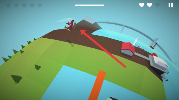 3、通过点击屏幕,操控飞机沿箭头方向飞行,避开障碍,飞越地形,完成飞行任务获取高分。