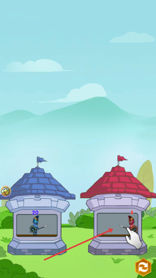 1、点击塔楼调派士兵,合理分配蓝、红塔楼兵力,让士兵出击对战,熟悉战斗流程。