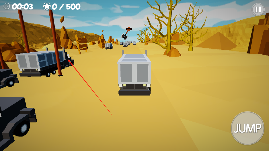 2、地形利用技巧:优先选择屋顶等高处路线,可避开地面密集障碍,遇到卡车时借助攀爬快速前进,利用地形优势缩短通关时间。