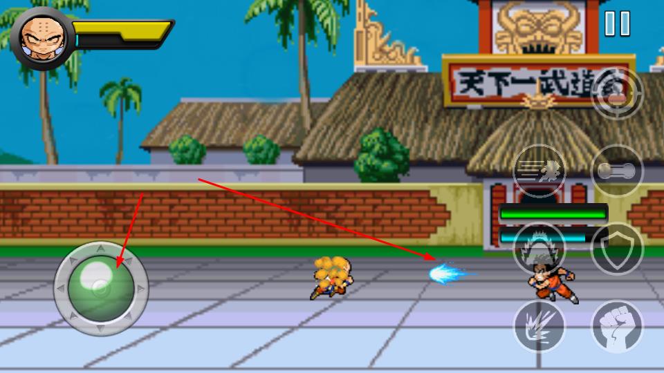 2、点击左侧技能按键,释放气功波等招式,对敌人发起攻击,必须把握时机输出伤害。