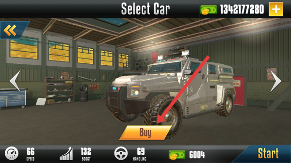 1、进入车库界面,如果不喜欢初始车辆,可以选择点击橙色Buy按钮,消耗6004金币购入装甲车。