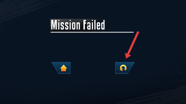 3、若任务失败会显示Mission Failed,需要点击右侧带循环箭头的蓝色按钮,重新挑战当前关卡。