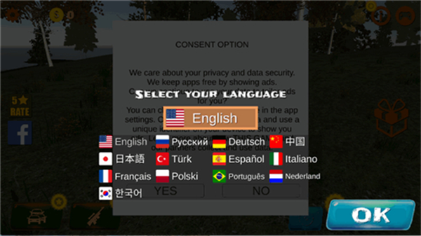 1、打开游戏进入界面后,先选择合适的语言,随后进入商店挑选心仪武器,为即将开始的狩猎做好装备准备。