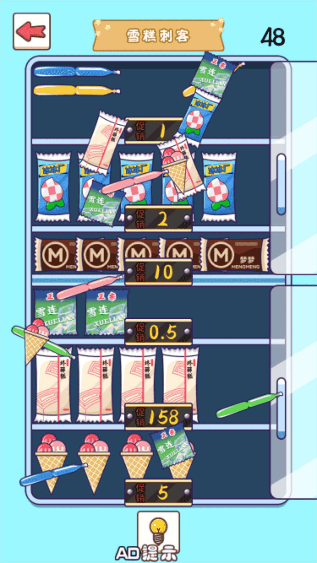 2、留意左上角“AD进化”“AD无敌”功能,卡关或遇强敌时,观看广告解锁强力状态,助力角色快速突破,如进化升阶、短时间无敌碾压对手。