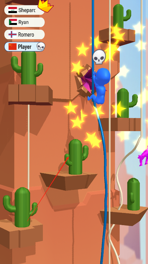 2、灵活攻击对手:在攀爬过程中,利用身体碰撞或拾取的道具攻击附近对手,使其减速或掉落,为自己创造有利位置,但需注意避免因攻击而影响自身节奏。
