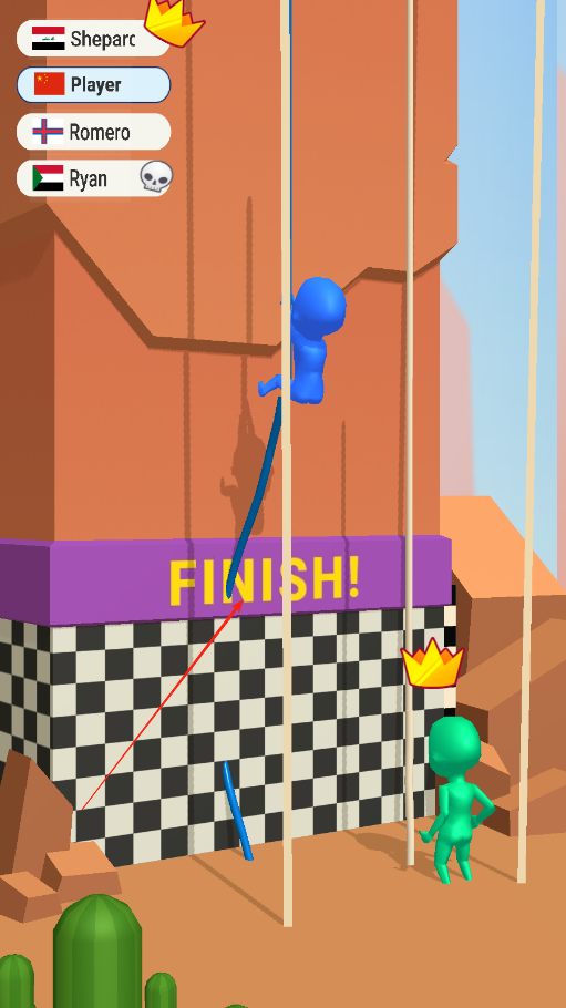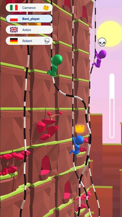 3、把握冲刺时机:在接近终点的最后一段赛道,评估自身与对手的距离,在确保不掉落的前提下全力加速攀爬,借助最后一跃冲过终点线,抢占冠军位置。