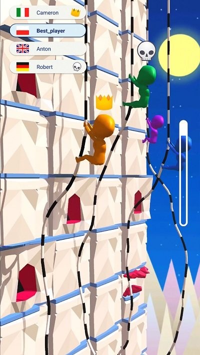 2、攀爬攻击融合:将向上攀爬的核心玩法与自由攻击对手的机制相结合,玩家不仅要比拼速度,更要运用策略干扰对手,形成独特的竞技模式。