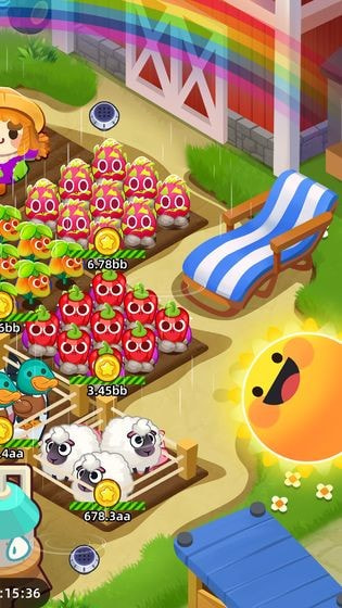 3、灵活参与轻松管理:可随时随地加入游戏,通过持续生产作物获得加分,日常依靠一键除草、施肥等简单操作管理农场,兼顾策略性与休闲性,享受经营乐趣。