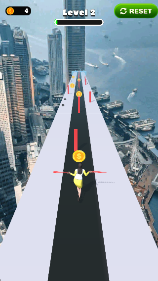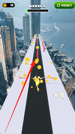 1、进入首个跑道,开始尝试跑酷并留意前方的万丈悬崖,小心控制角色,同时收集沿途金币,开启这场充满挑战的跑酷之旅。