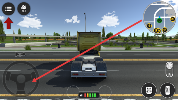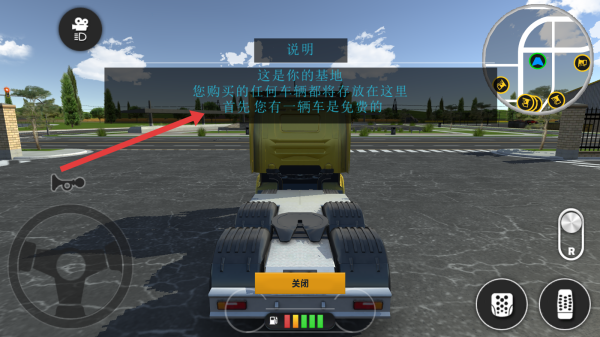 2、用左下角方向盘、右侧按键操控卡车,跟随地图标记右上角小地图,前往任务点工地。