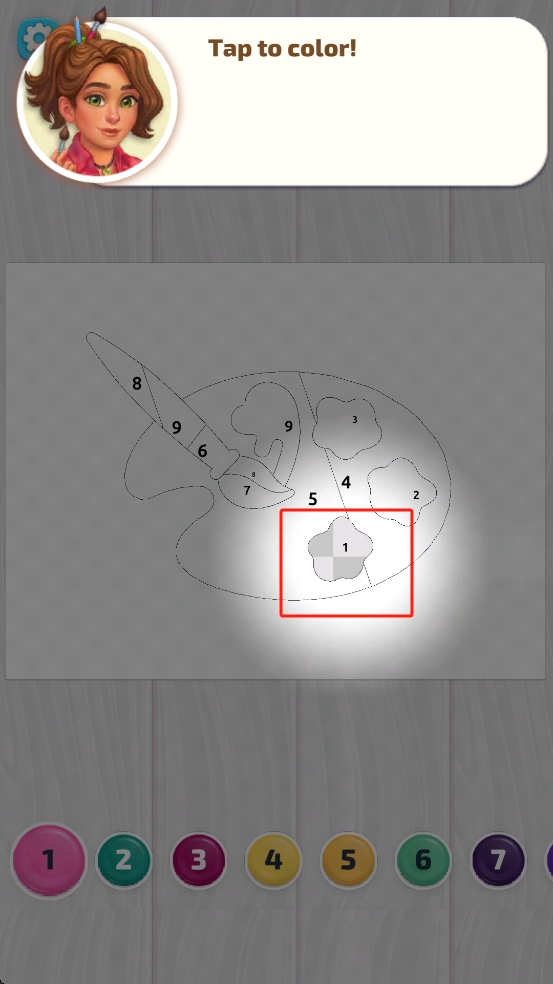 1、进入关卡后查看画布数字区域,点击下方对应数字的颜色按钮,再点击画布上标相同数字的区域填色即可。